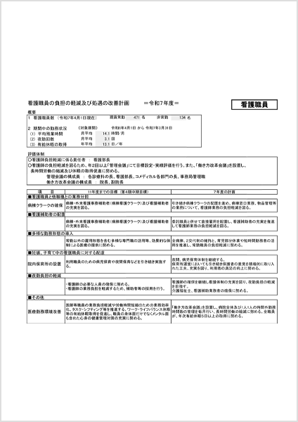 看護師の負担軽減及び処遇改善計画